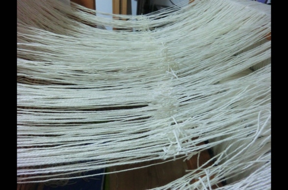 Nach dem Weben erhalten die Decken ihre Ausrüstung, bei der sie flauschig aufgerauht und leicht angefilzt werden.